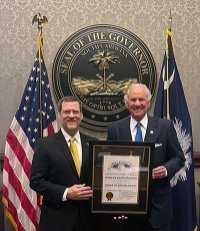 Governor Henry McMaster awarded Scott Woods, president and CEO of Platinum Trust Bank, with the Order of the Palmetto.